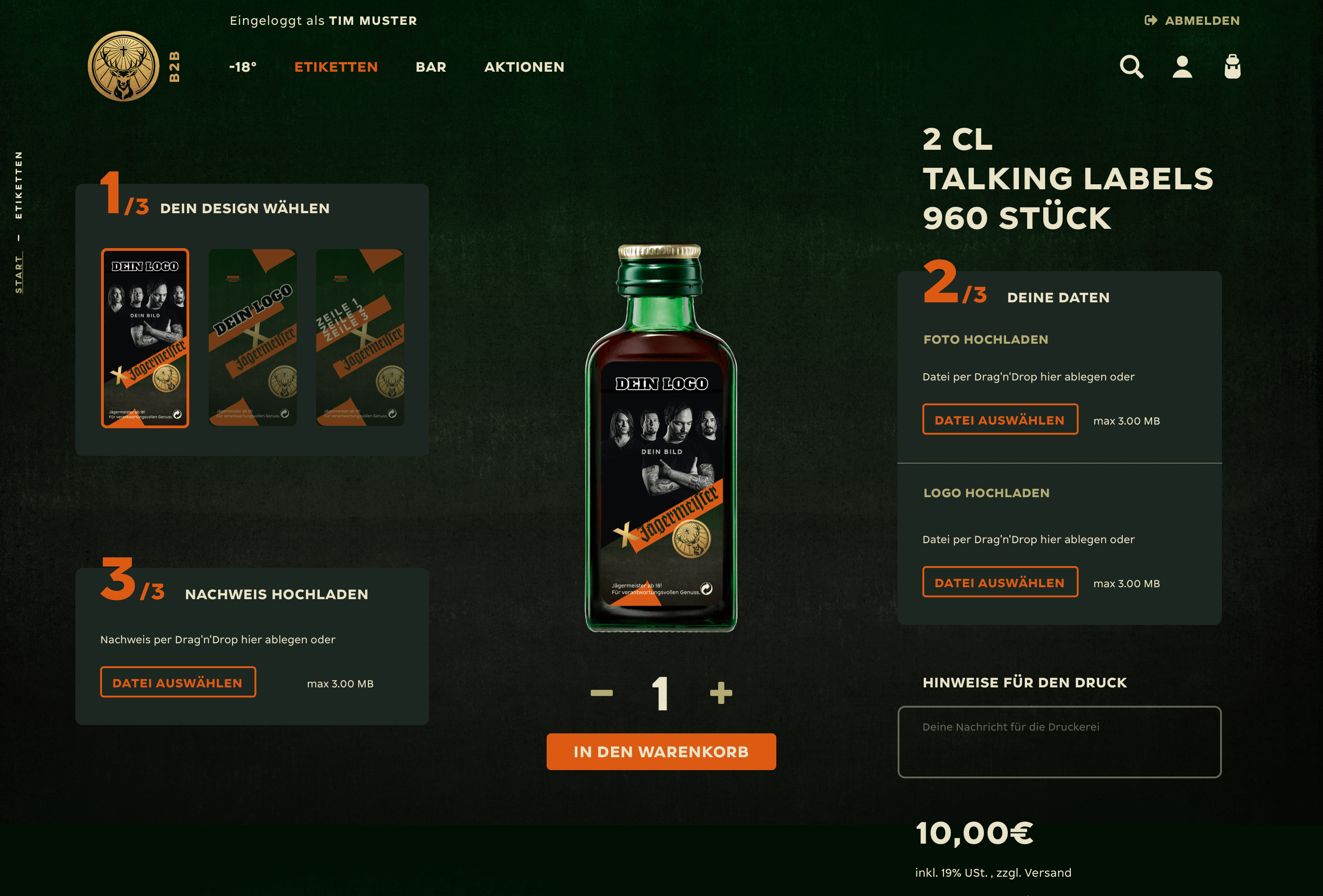 Mit Live-Preview bei Texteingabe haben wir es dem Nutzer ermöglicht, seinen persönlichen Text direkt als Endresultat auf dem Etikett zu betrachten.