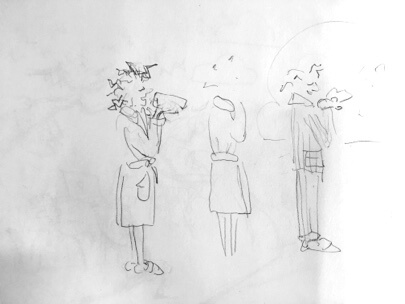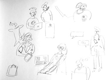 Mit ersten Skizzen haben wir versucht, den Illustrationsstil zu definieren.