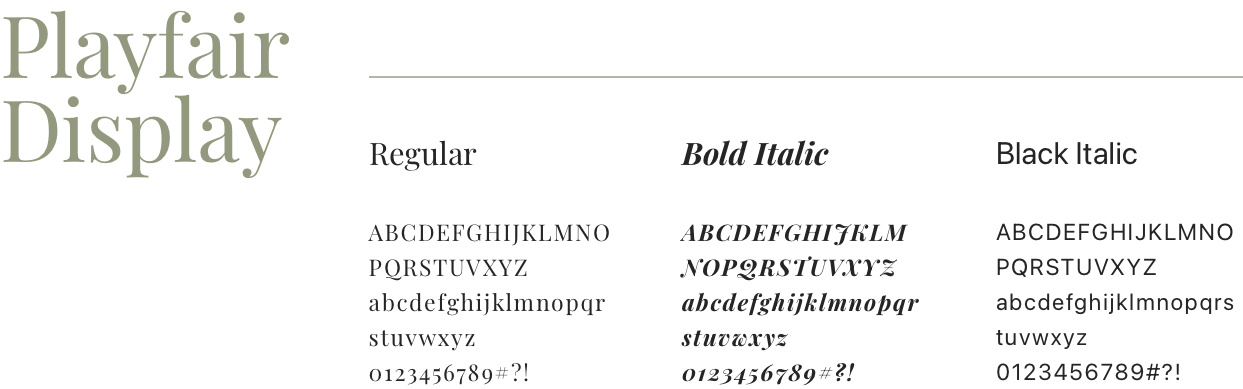 Mit der klassischen Serifenschriftart Playfair Display wird der edle Charakter der Produkte unterstrichen – die Headlines sind präsent, geben Übersicht und heben die jeweiligen Kategorien und Produkte hervor.